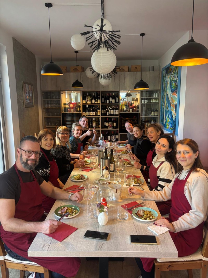 Am 15. Dezember 2025 haben wir unsere Weihnachtsfeier ganz kulinarisch gestaltet: mit einem 4-Gänge-Kochkurs! Gemeinsam haben wir die Kochlöffel geschwungen, neue Rezepte ausprobiert und die Zutaten in leckere Gerichte verwandelt.